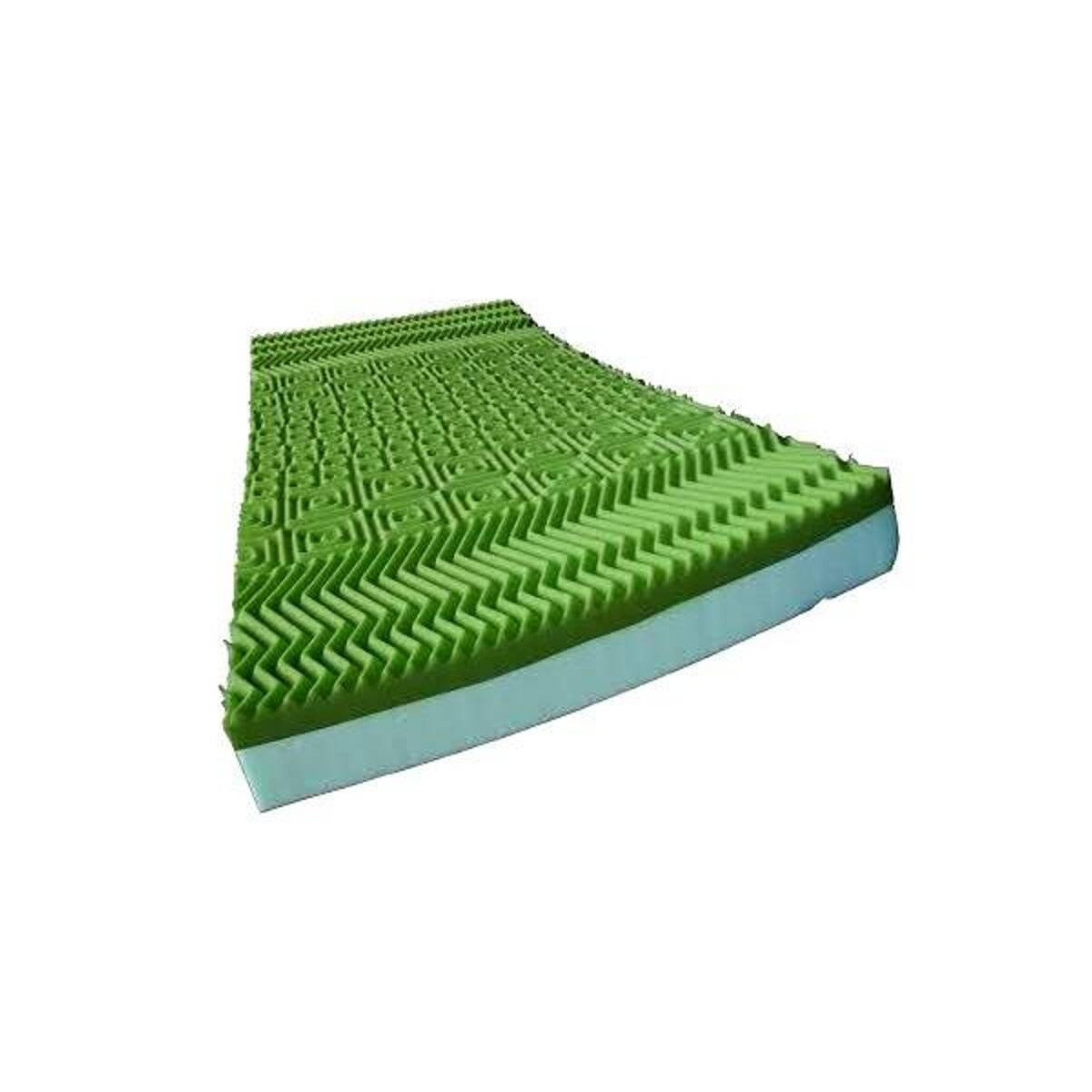 Il lato superiore è in poliuretano espanso viscoelastico a memoria di forma densità 50 kg/m³ ventilato spessore 5 cm, certificato classe 1M, bugnato a 7 zone.