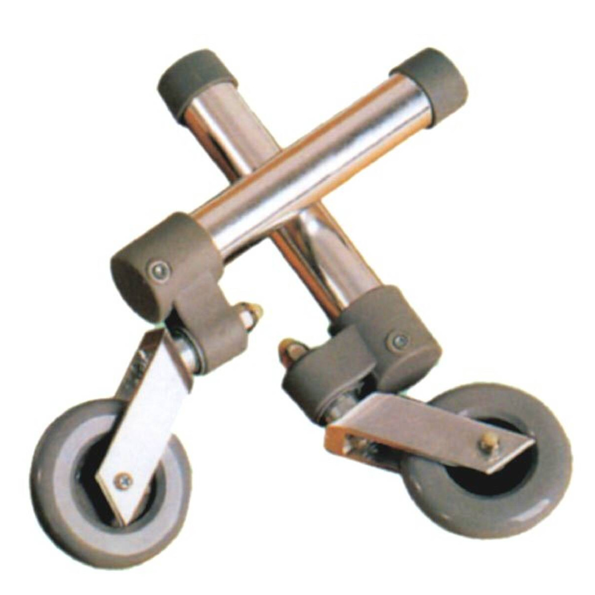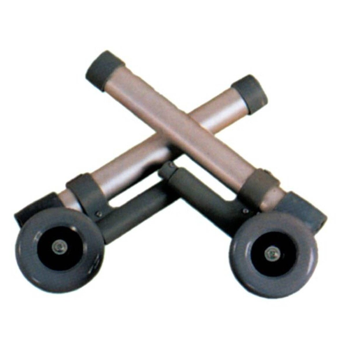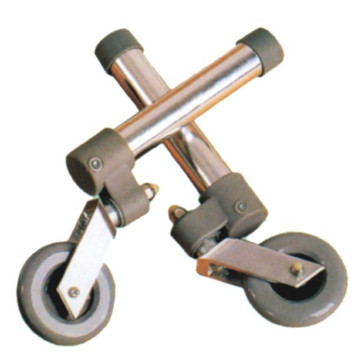 Ruote fisse, ruote piroettanti, ruote con bloccaggio, puntali con bloccaggio, doppie ruote fisse, cestino di trasporto, puntali completi oppure solo la gomma del puntale antiscivolo.