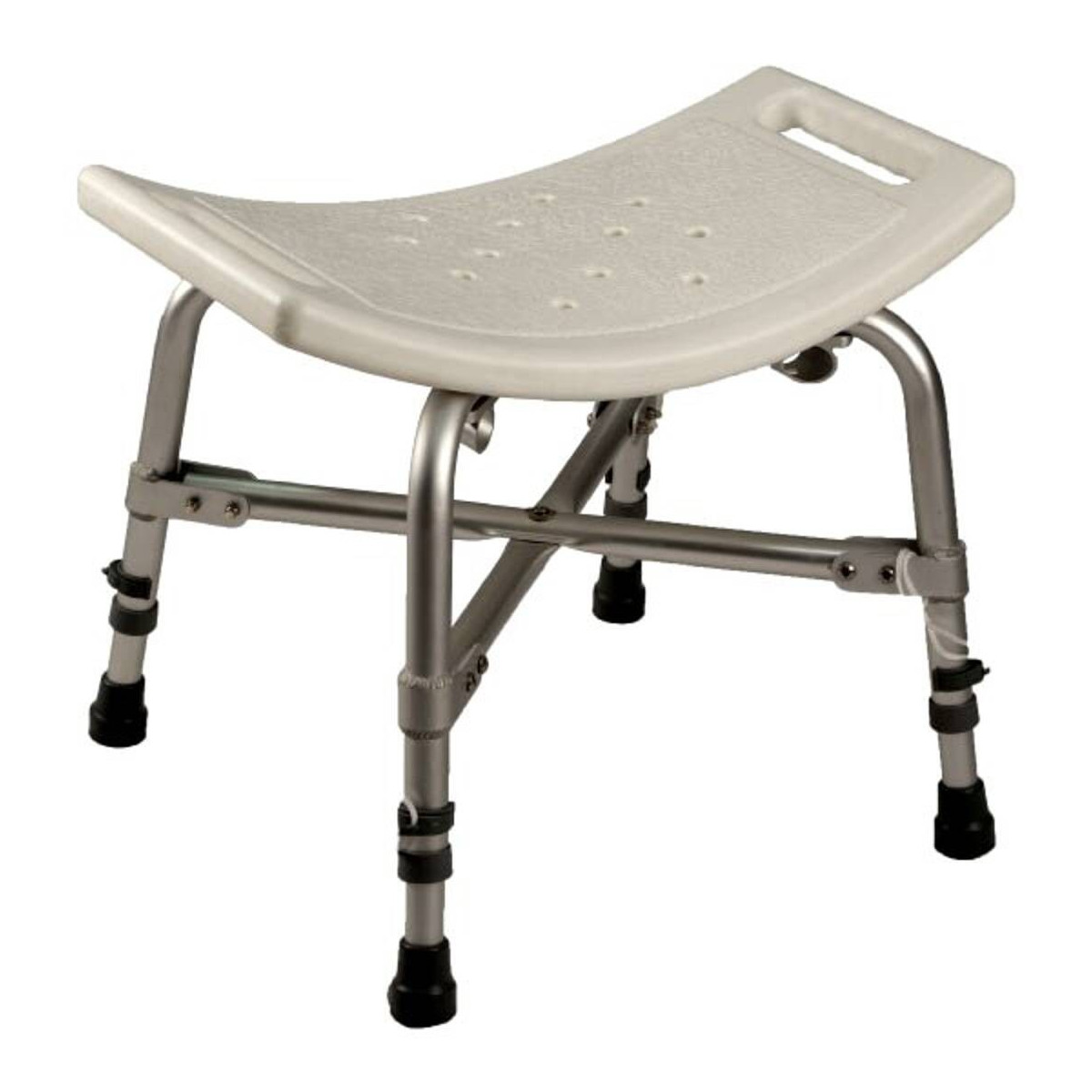 Lo sgabello da doccia bariatrico art. ParaBB3 è un ausilio ad alta resistenza progettato per offrire stabilità e sicurezza durante l'igiene personale. Realizzato in materiale plastico ad alta densità, presenta una seduta antiscivolo con fori per il drenaggio dell'acqua e due maniglie laterali integrate per una presa salda. La struttura è sostenuta da gambe in alluminio anodizzato rinforzate da una crociera centrale che ne massimizza la solidità.