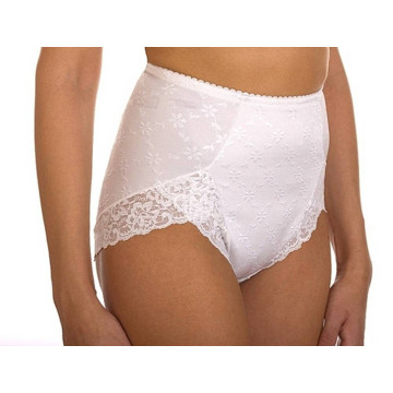 La particolarità tecnica di questo modello risiede nel pannello in puro cotone inserito internamente nella parte anteriore. Questo rinforzo, lavorando insieme all'eccellente consistenza del tessuto elasticizzato (22% elastam), garantisce un ottimo sostegno della zona addominale. A rendere unico l'articolo 550 è anche il morbido pizzo incrociato nel girogamba: una soluzione strutturale che evita l'effetto "taglio" e assicura il massimo comfort durante l'intera giornata.