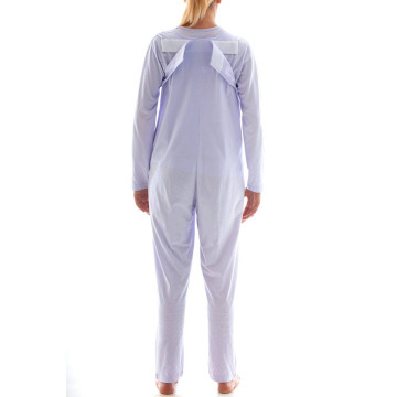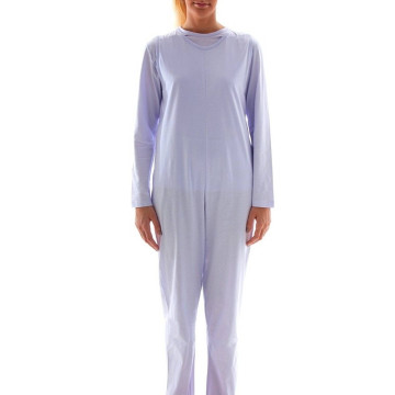 Il pigiamone sanitario per donna in caldo cotone (interlock) è la soluzione ideale per i periodi più freddi dell'anno. Questo pigiama intero, concepito come una salopette composta da maglia e pantalone integrati, è stato progettato da ParamedicalShop per offrire il massimo comfort termico e una sicurezza assoluta contro lo spogliamento arbitrario.